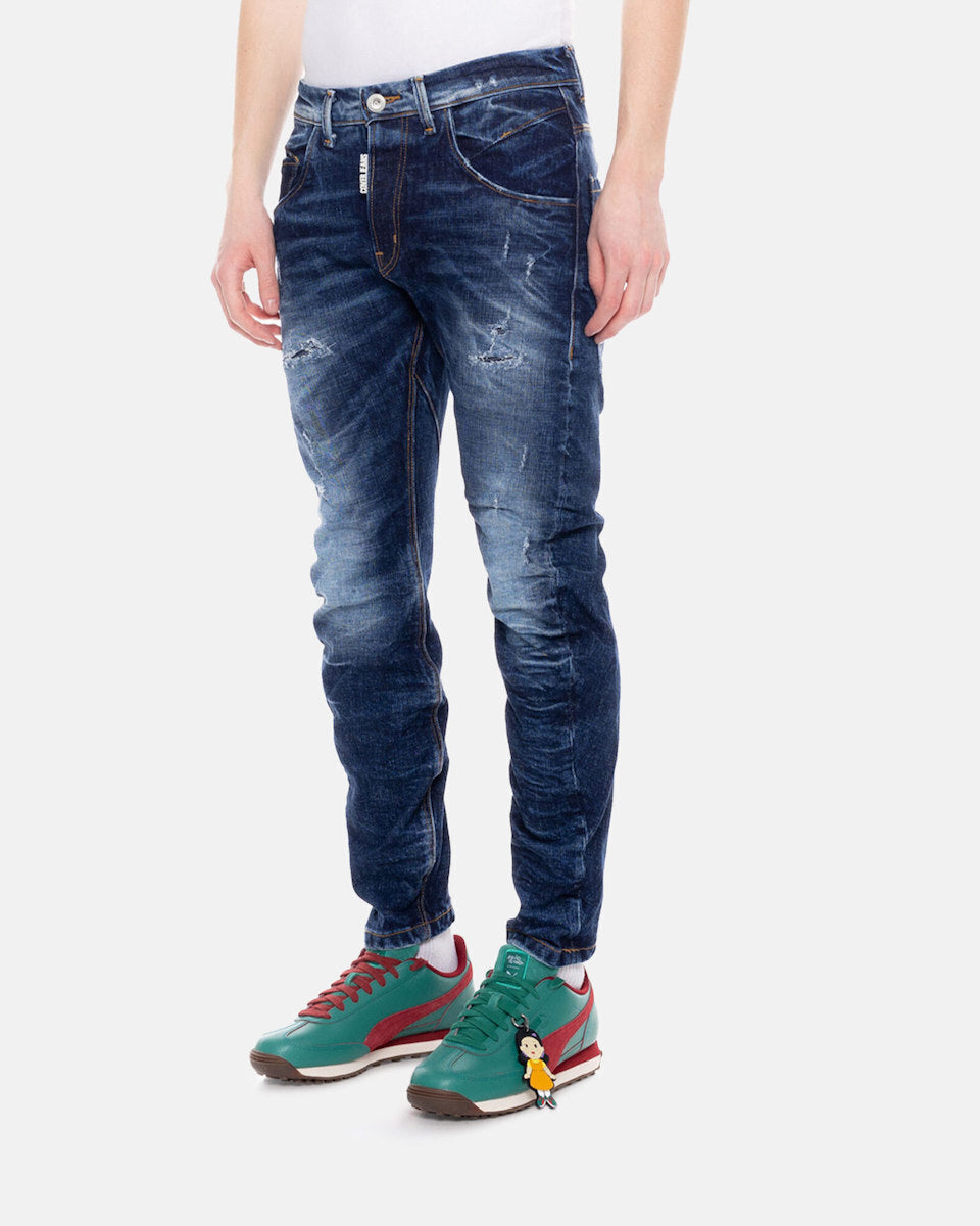 Men's Cover Denim Jeans With Front Distressing. Features A Decorative Stitched Label With The Logo On The Back.