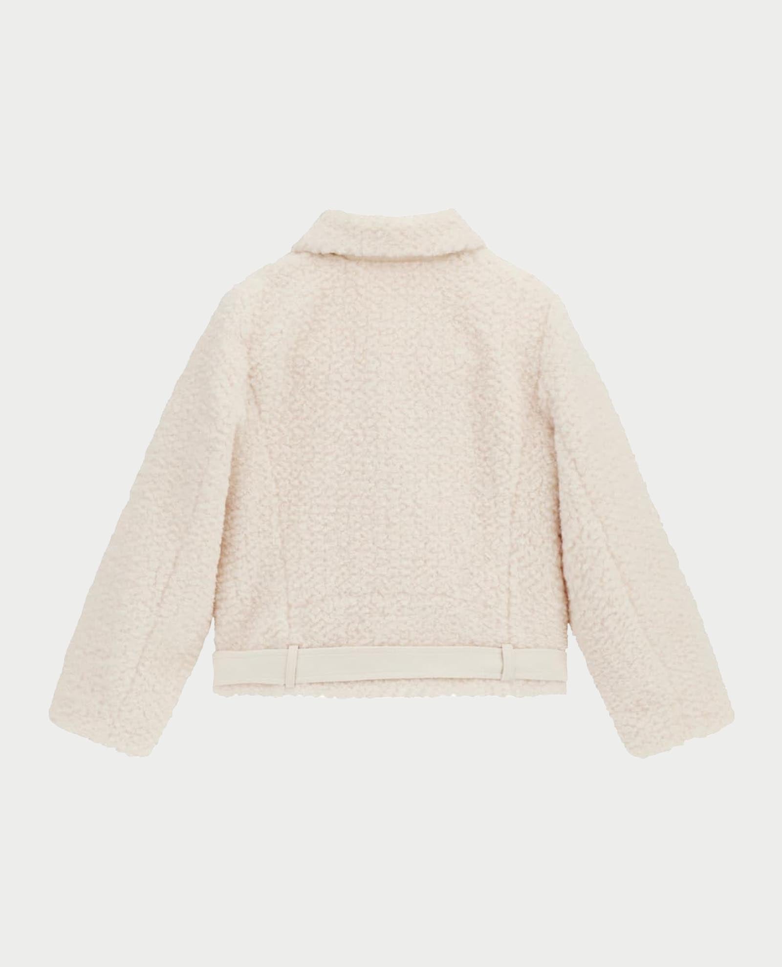 Guess Girls' Faux Sheepskin Jacket With Side Zip Fastening, Side Zip Pockets And Belted Hem.