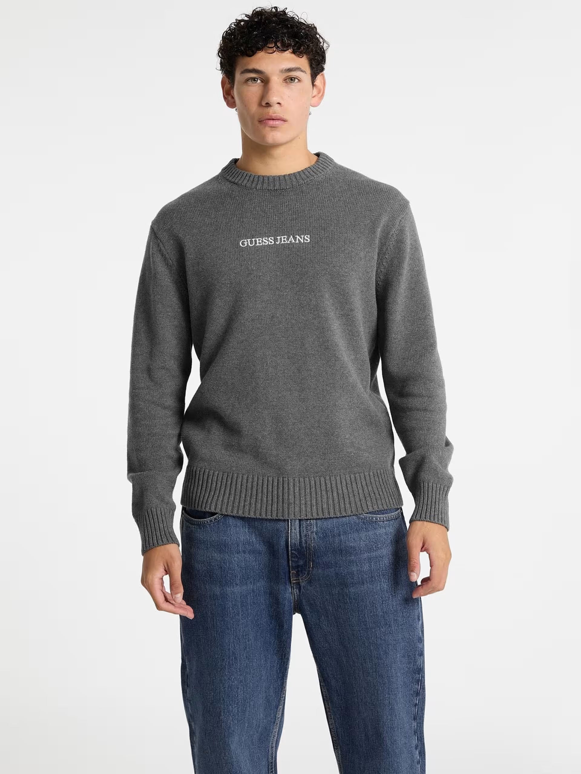 Άνετο Στυλ Με Κομψή Στροφή. Βαμβακερό Πουλόβερ Με Κεντημένο Λογότυπο Προσφέρει Unικo Στυλ. Στρογγυλή Λαιμόκοψη Και Μακριά Μανίκια. 100% Βιολογικό Βαμβάκι