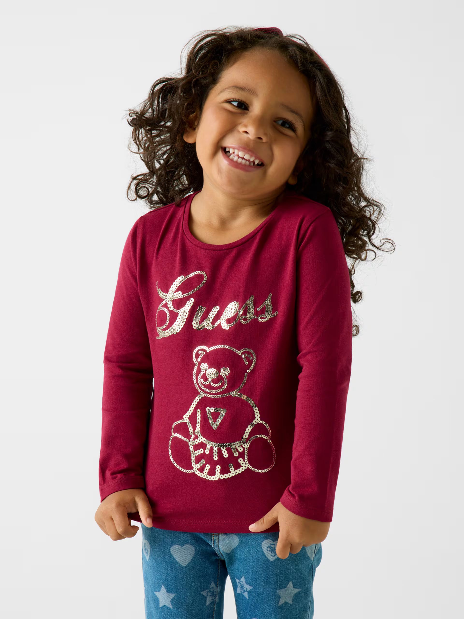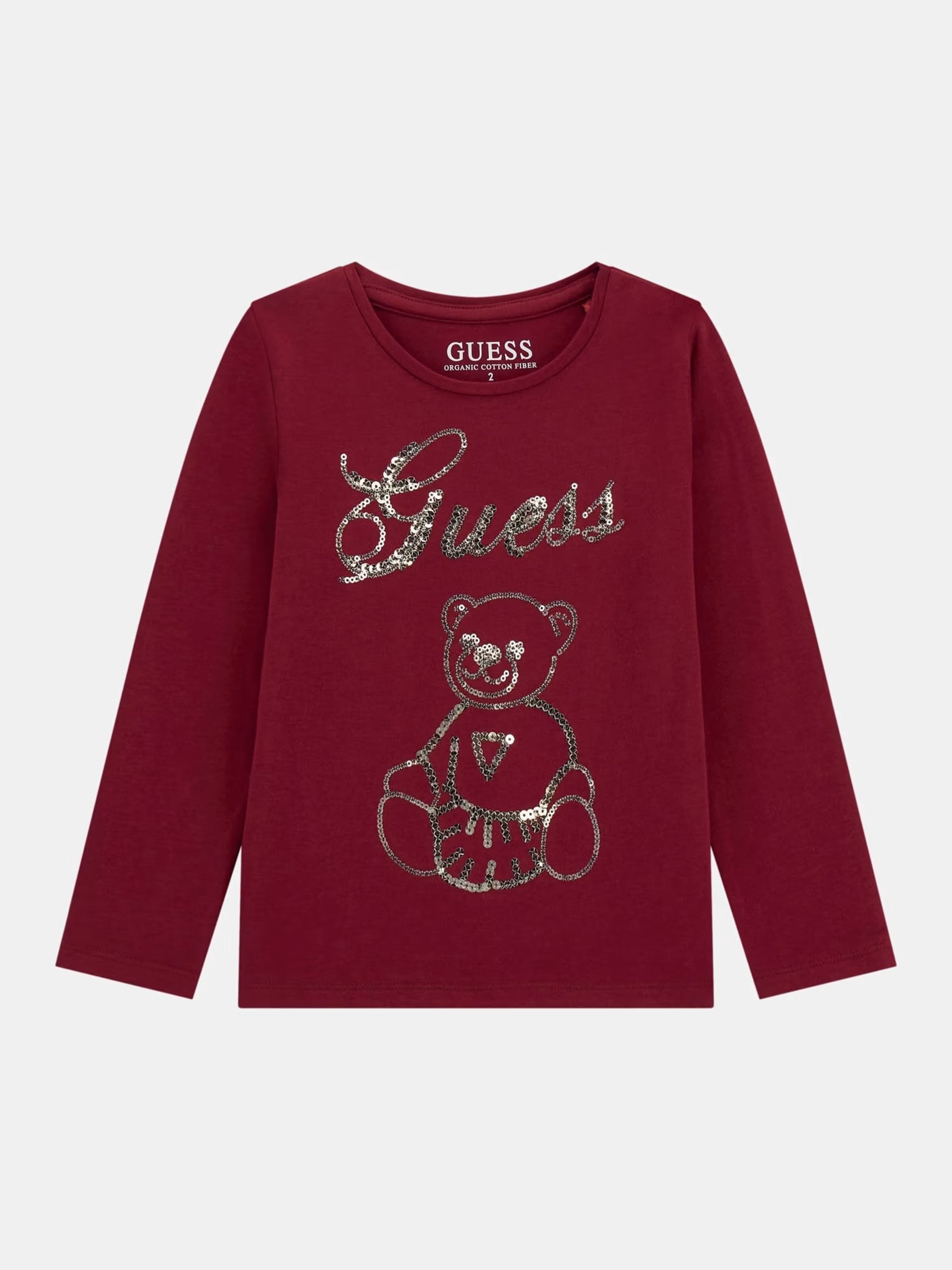 GUESS KIDS LS BEAR EMBROIDERY T SHIRT