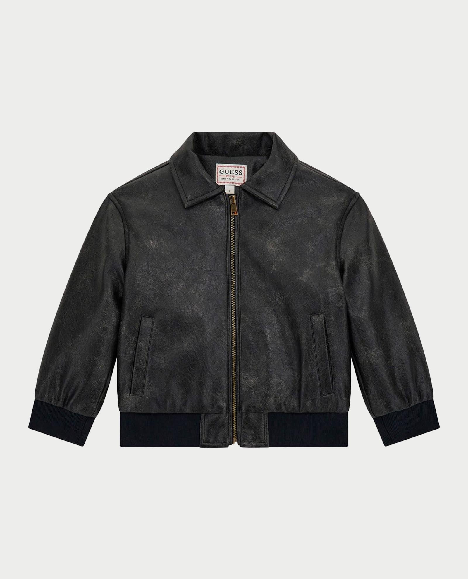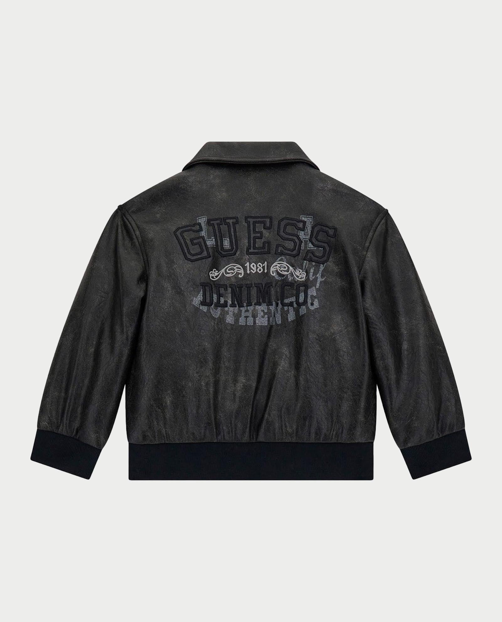 GUESS KIDS PU LEATHER BACK EMBROIDERED JACKET