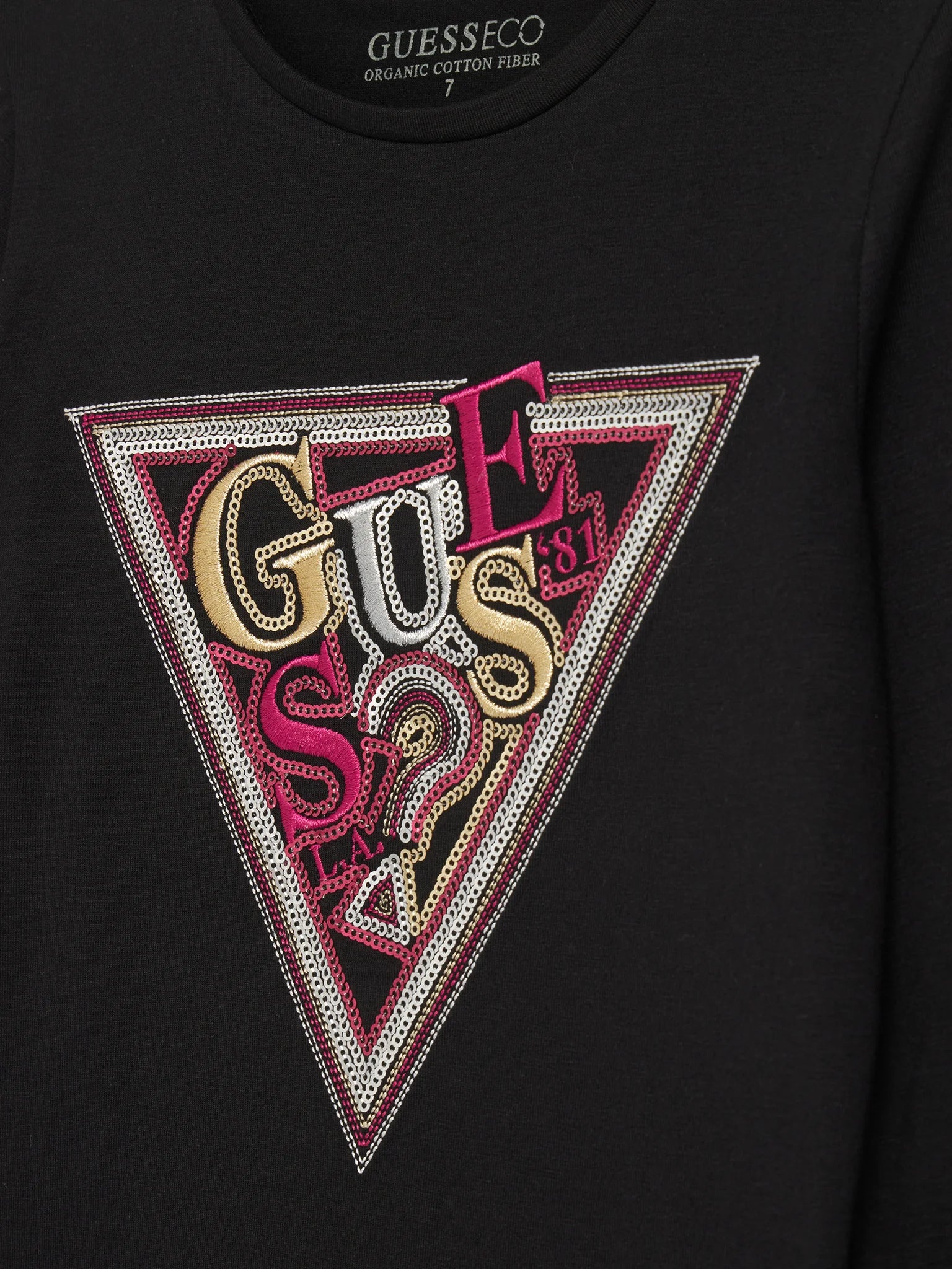 GUESS KIDS TRIANGLE SEQUINS LOGO LS T SHIRT