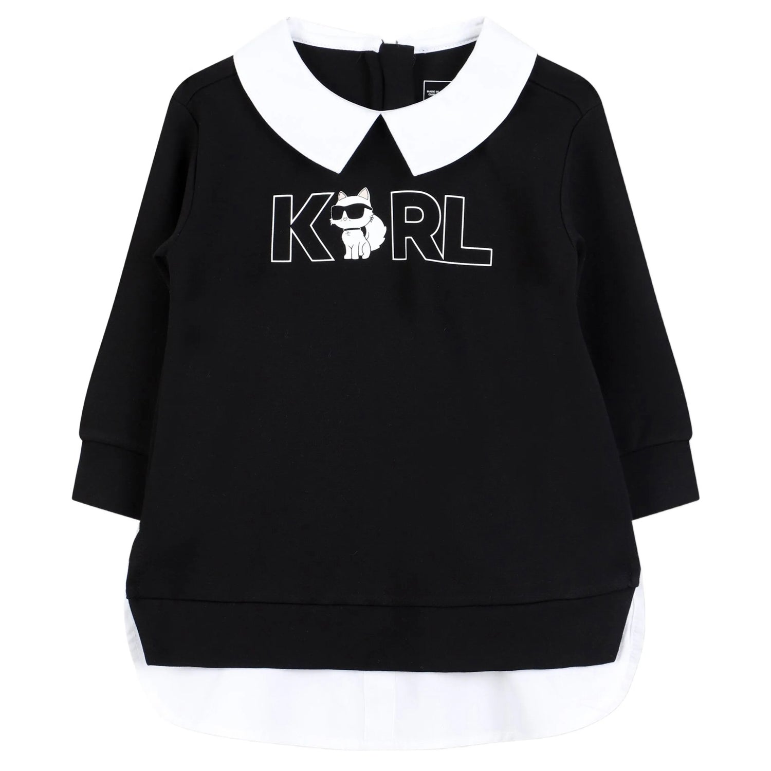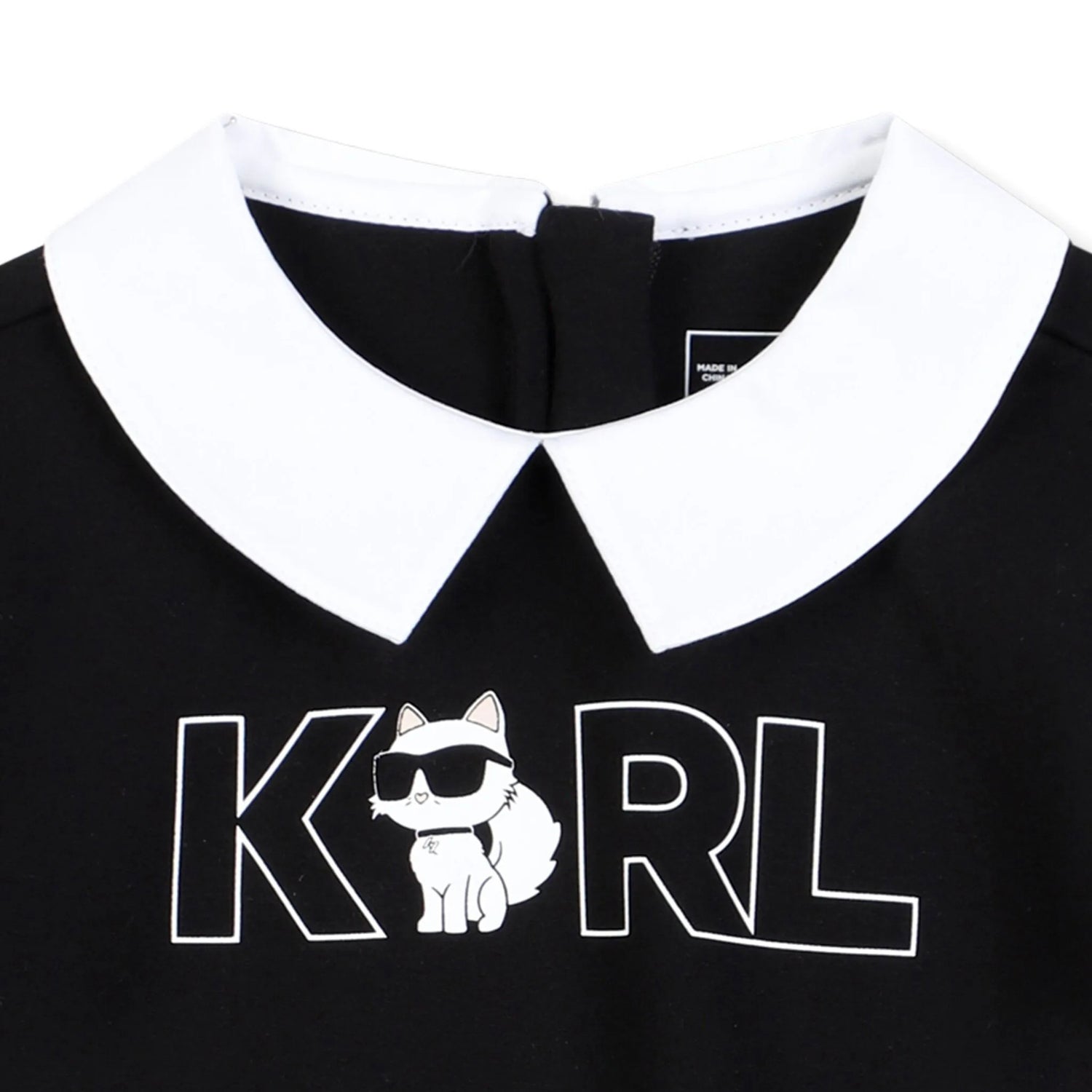 Karl Lagerfeld μαύρο φούτερ από βισκόζη με κομψό γιακά, λευκό στρίφωμα και λογότυπο, με διακριτικό φερμουάρ στο πίσω μέρος