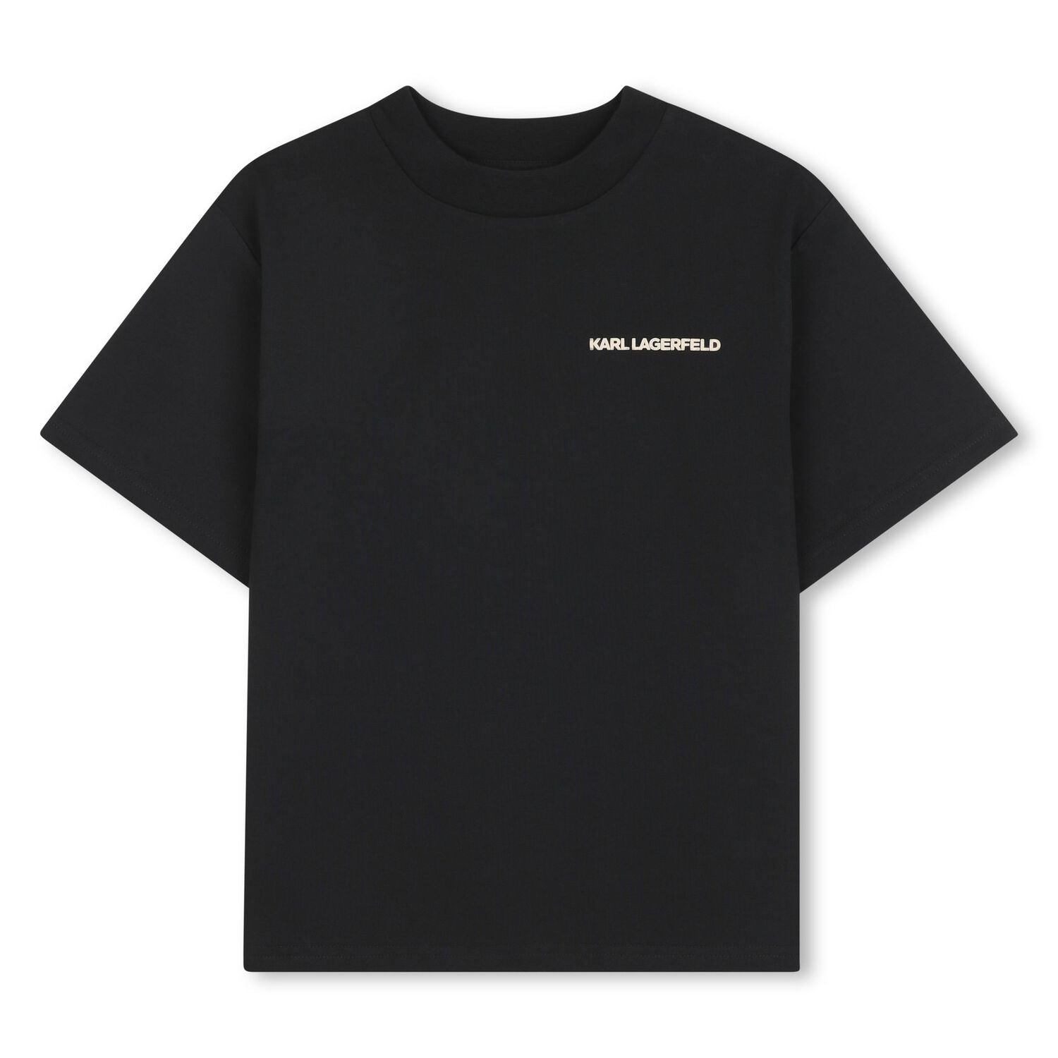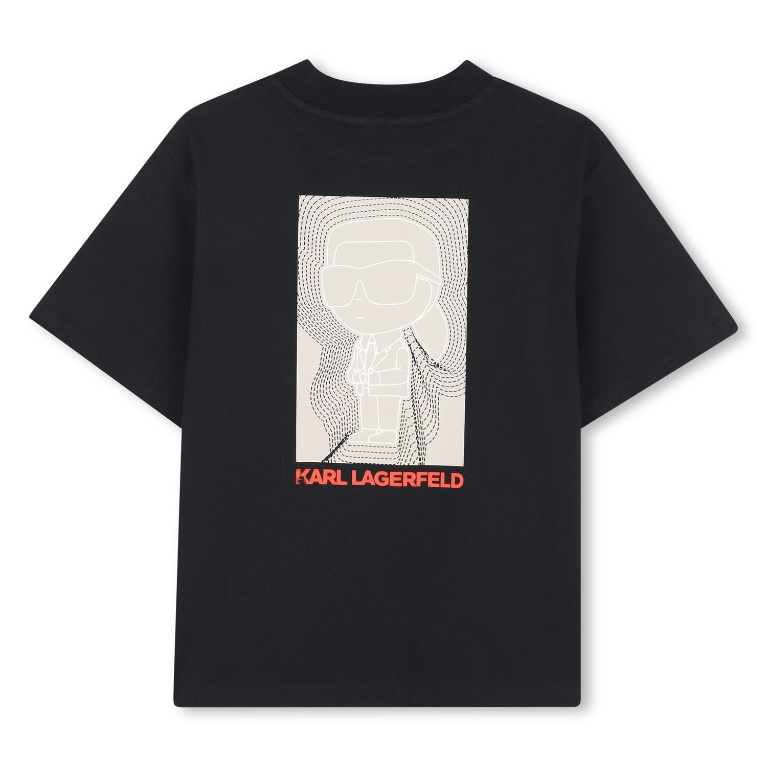 This Karl Lagerfeld kids' t-shirt impresses with a clean silhouette and a unique graphic print on the back that adds character and a modern look. It is made of soft and breathable cotton, providing comfort when worn all day. The model has a round neckline and short sleeves, suitable for everyday life and leisure.