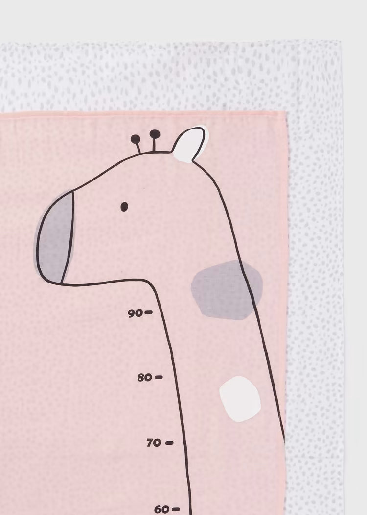 Muslin with measuring accessory to photograph your baby's growth during their first year. Just place your baby in the centre of the muslin, mark their months of life with the indicator and measure their height.