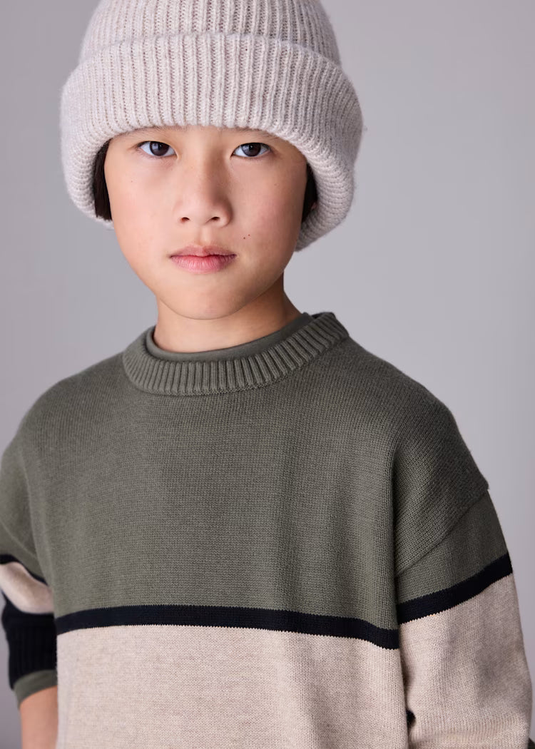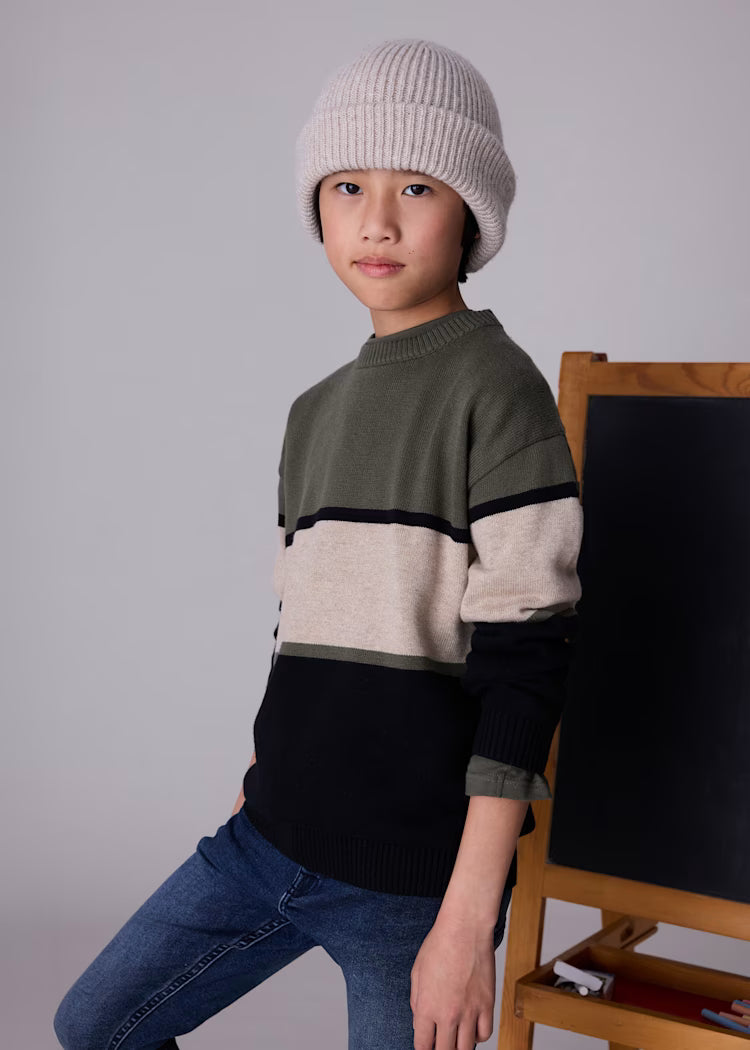 Contains recycled polyamide. Long sleeved Jumper for boy. Round neckline.