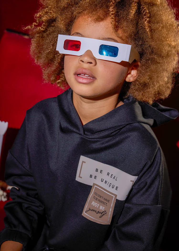 Sweatshirt with relaxed lines for girl. Hooded collar. Adjustable elastic at the bottom of the item to adjust the sizing.
