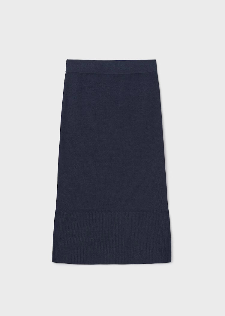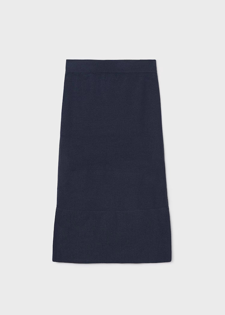 Contains recycled polyester. Mid-length skirt for girl that will give a chic touch to their outfit. Elasticated waistband. Knitted fabric, soft and pleasant to the touch. Side openings on the bottom part of the item which can make the item more comfortable to wear.