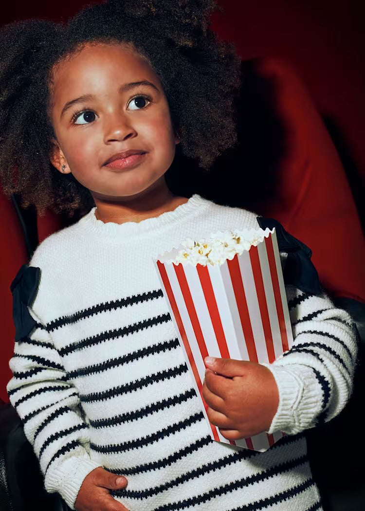 Contains Recycled Polyester. Long Sleeved Dress For Girl. Waved Collar. Made From Comfortable Knitted Fabric. Decorative Elements: Applique Bows. Striped Pattern.
