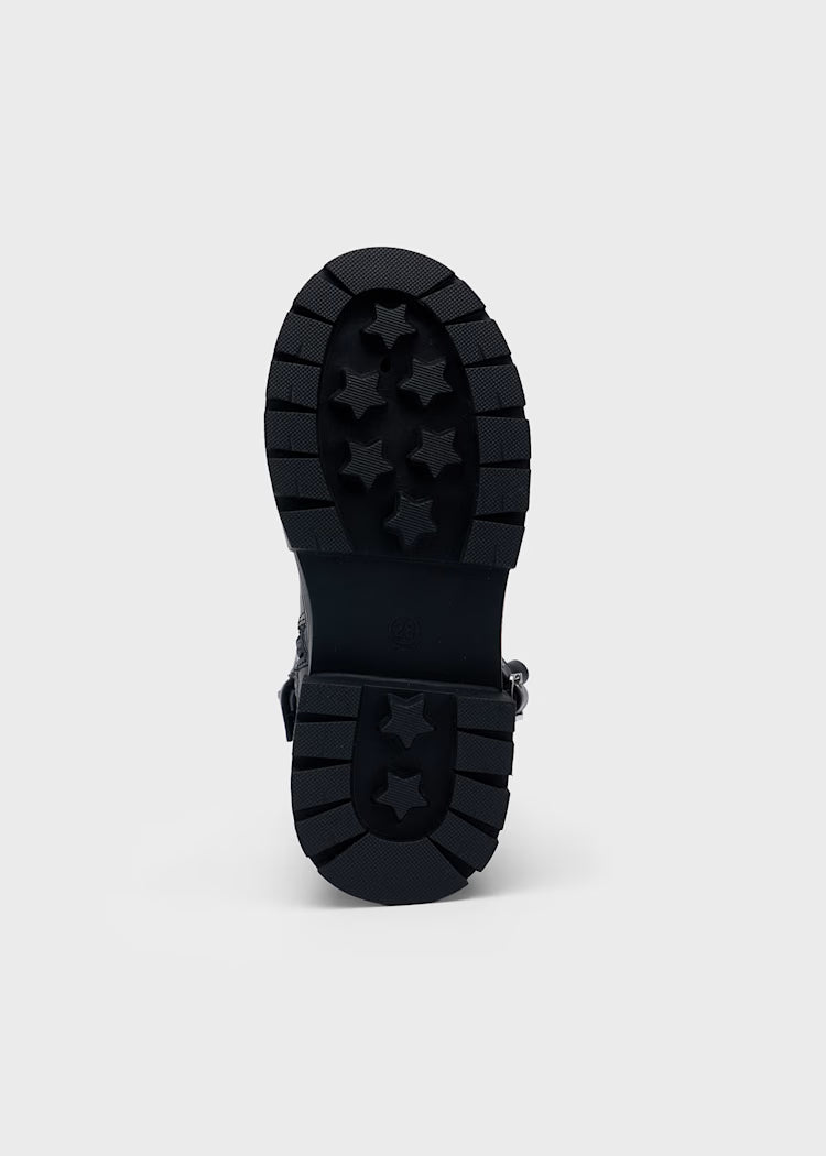 Knee high boots for girl a perfect complement to any winter look. Leather effect outer material. Lightweight and flexible rubber sole. Side zip fastening for a quick, simple fit.
