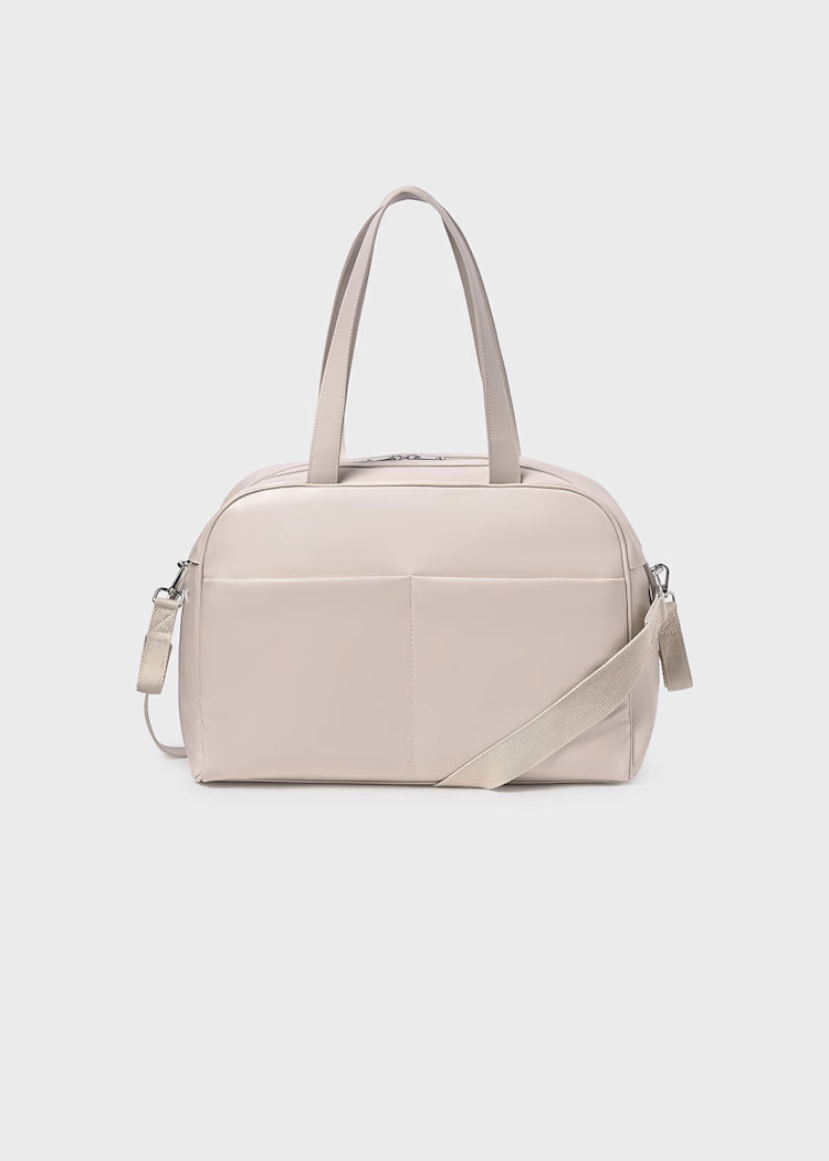 Contains recycled polyester. Spacious changing bag used to help you on a daily basis and store everything you need to look after your baby. Zip fastening. Modern leatherette exterior. Textile exterior with quilted effect. It has a long detachable shoulder strap allowing it to be worn as a messenger bag for added versatility. Includes short hand held straps which ease handling.