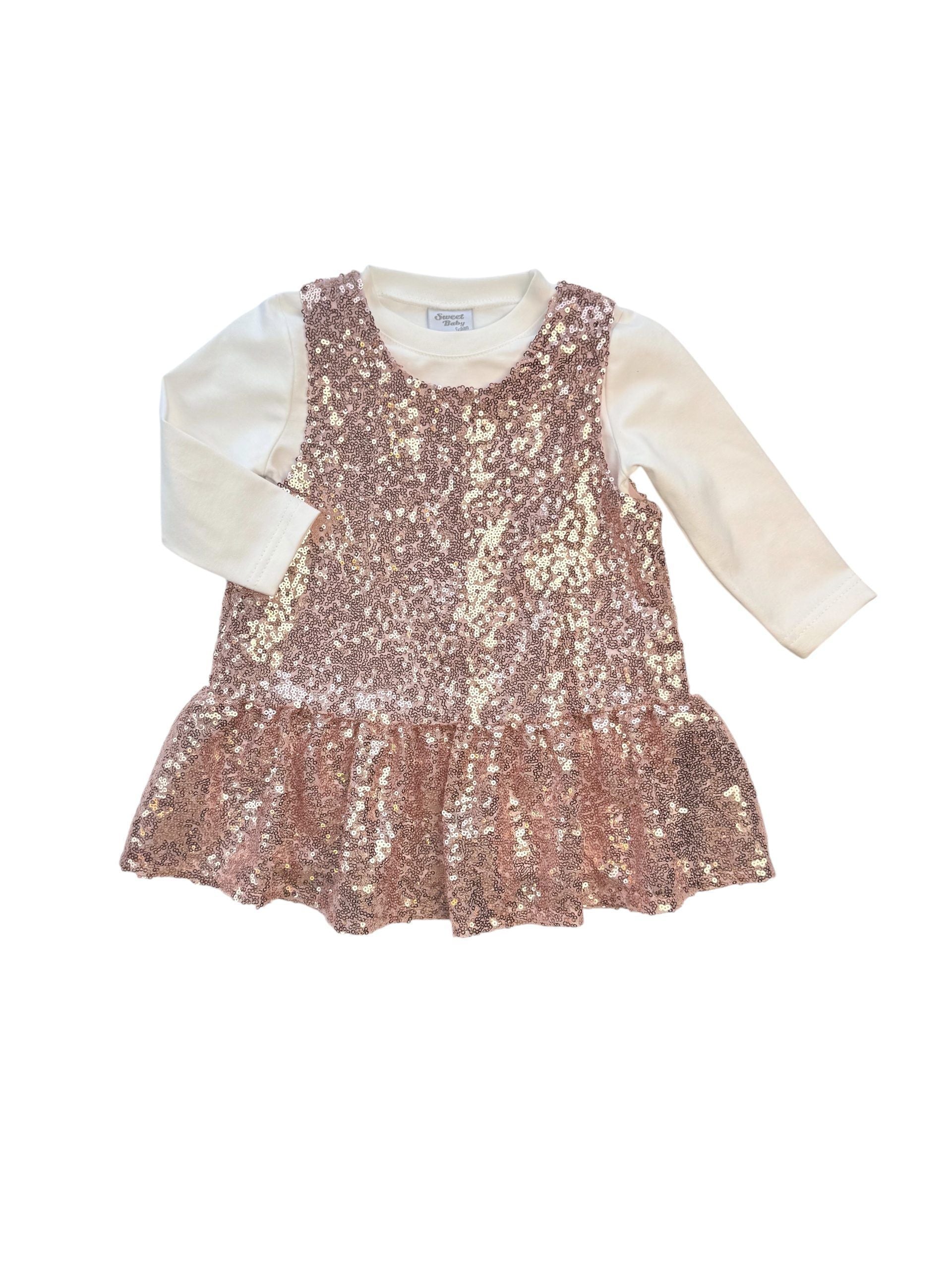 SWEET BABY GIRLS GLITTER SEQUINS DRESS AND BLOUSE SET