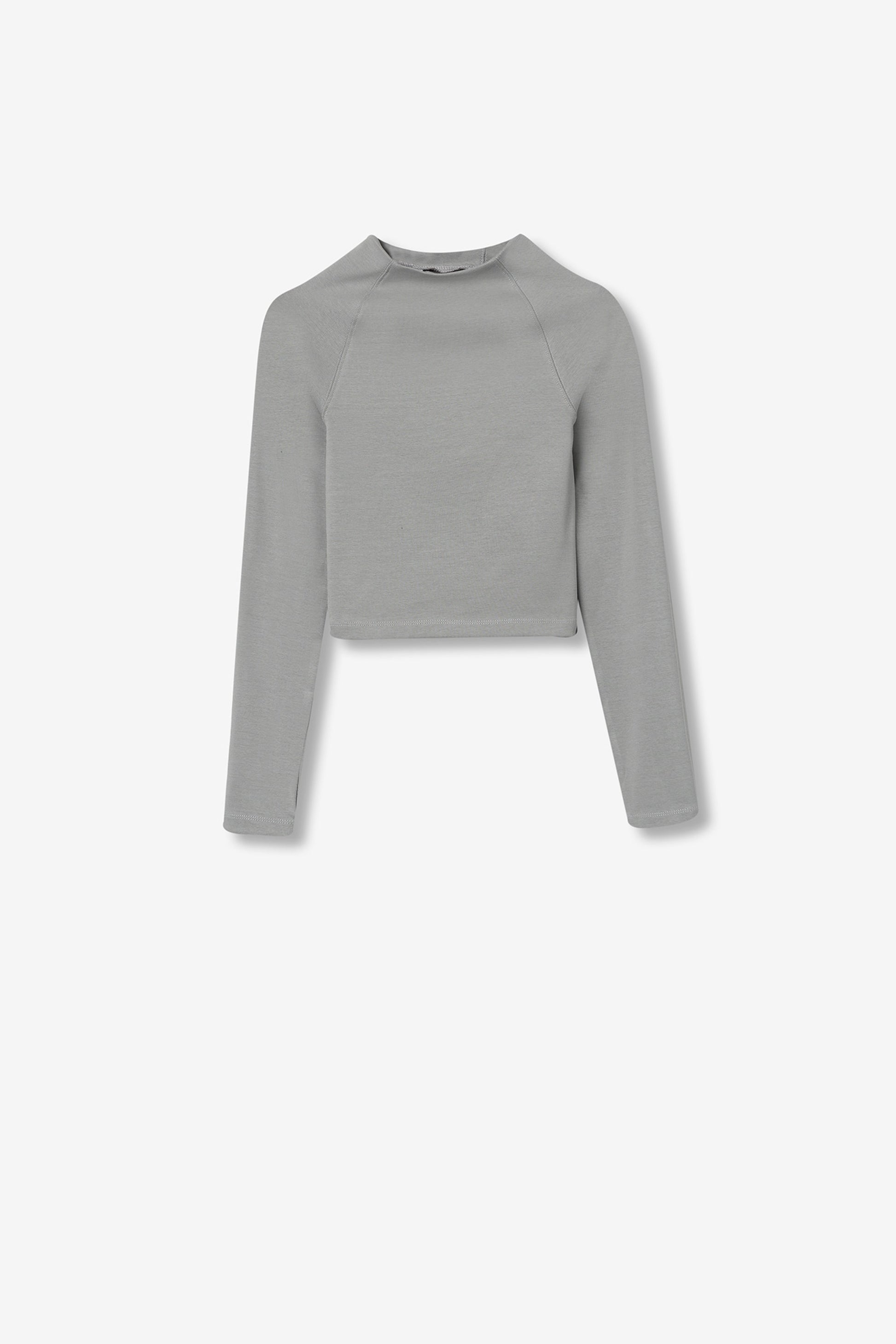 Super Slim Fit Cotton Knit T-shirt. Round Neckline, Long Raglan Sleeves, And Cropped Hem.