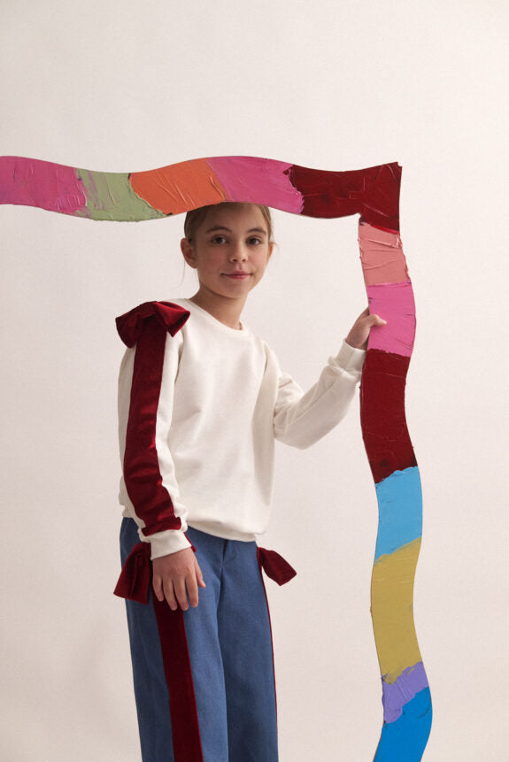 To παιδικό τζιν παντελόνι απο τη σειρά “Not Just” είναι η τέλεια επιλογή για μικρές που αγαπούν τα χαριτωμένα και παιχνιδιάρικα σχέδια. Σε classic denim χρώμα συνδυάζει μια παιχνιδιάρικη διάθεση που την ολοκληρώνουν οι φιόγκοι στα πλαϊνά, δημιουργώντας ένα στυλ που είναι ταυτόχρονα ζεστό, άνετο και μοναδικό.