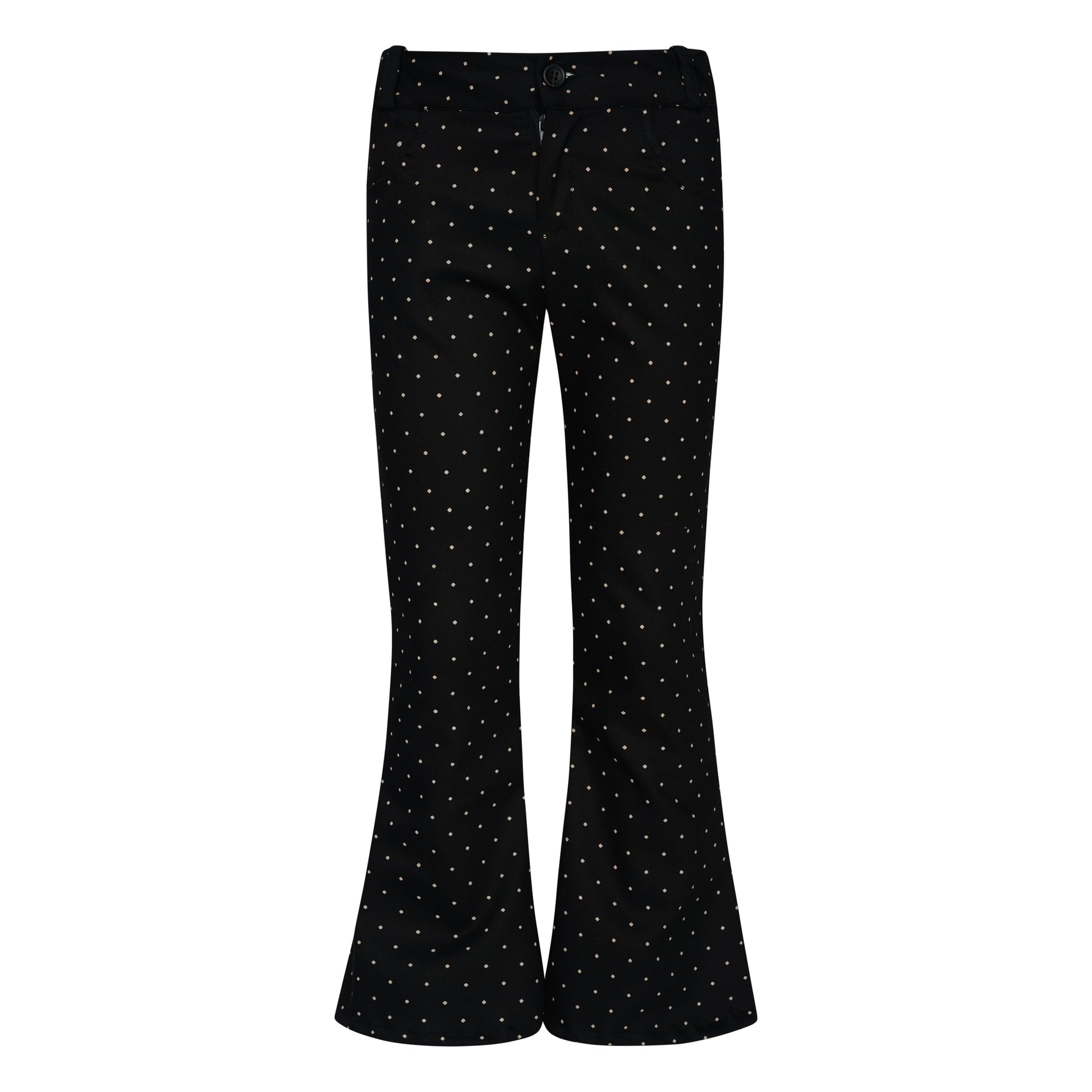 ‘Ενα ιδιαίτερο flared παντελόνι σε μαύρο πουά χρώμα . Άνετη εφαρμογή και εβαζέ μπατζάκια. Έχει άνετη εφαρμογή και κλείσιμο με φερμουάρ στο μπροστά μέρος ! Δεν μπορεί να μη το λατρέψει!!